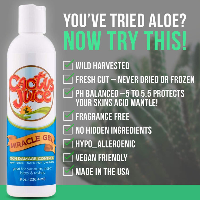 Don’t let a sunburn steal your summer fun. Grab the Cactus Juice™ Sunburn Special Combo Pack today for only $17.99 and experience the cooling, healing power of prickly pear cactus in two wonderful forms. “Your skin will thank you” (and your wallet will too!)